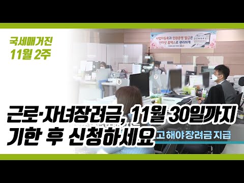 근로·자녀장려금, 11월 30일까지 기한 후 신청하세요국세청에서는 2021년 소득에 대한 근로·자녀장려금을 신청하지 않은 가구를 대상으로 11월 30일까지 기한 후 신청을 받고 있습니다.